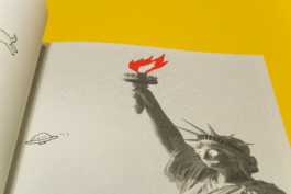 Risograph printed in six colors, the book spins a psychedelic ride through pop culture and the alien imagination. Produced in a limited edition.